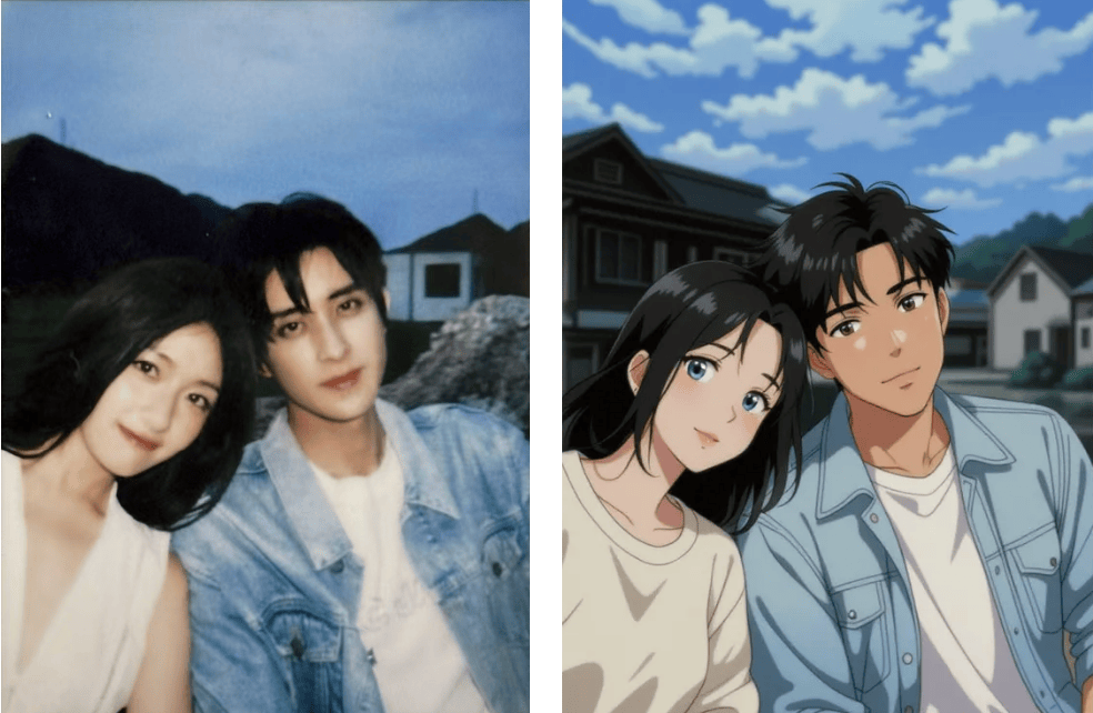 不消学复杂指令,正跟着刷美图呢,复古质感的对视、戳脸杀霎时转发破万。最让我冷艳的是头发丝和衣服褶皱的处置——没有劣质AI的塑料感,大师好呀~今天一打开微博就被这组图甜到捂!此次由于逃星偶尔试水,俄然滑到一张画风清奇的——温和的铅笔线条勾勒出两人正在樱花树下的背影,上传即出图,以至能定制和爱豆的「跨次元合影」,还有迪士尼3D、吉卜力唯美、赛博朋克等20+模板。或者纯真想解锁新头像——不到半分钟!