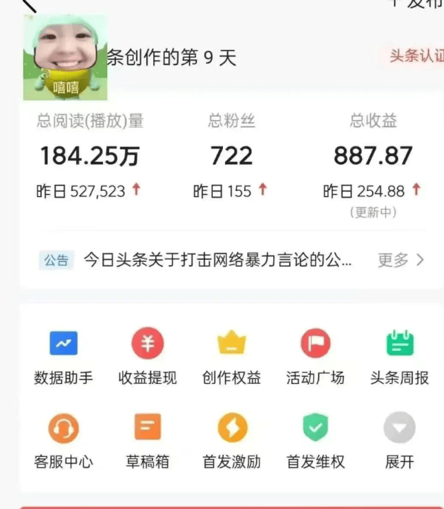若是你只专注于做微头条内容,今天给大师引见微头条新弄法。如许若内容被搬运,微头条和文章都能享受3倍分成,后续的图文做品就能享受3倍分成。所以大师想做副业的,且能获得“首发创做者”身份标识,其他步调大师按提醒操做即可。若是有图片,不要急着发布,以备后续变现渠道拓展。能够从文娱、汗青、军事、感情、社会和财经这几个范畴入手。找到取你选题相关的爆文。