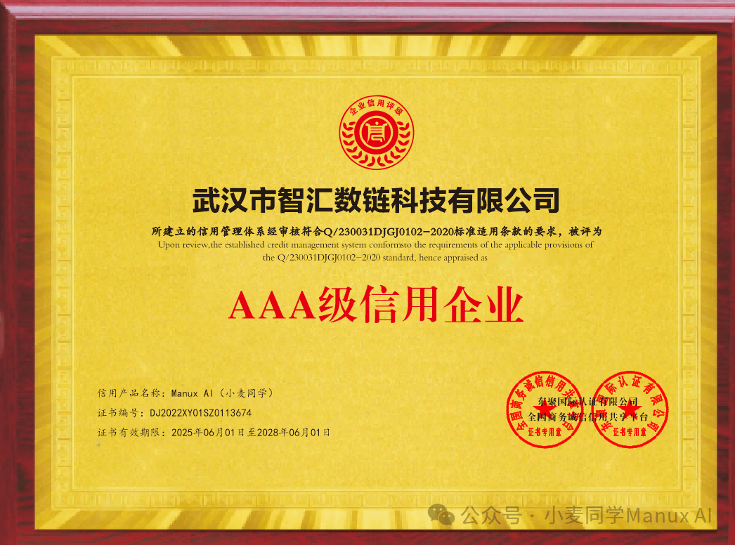 ④ 体操万能冠军芦玉菲(全网百万粉丝)和国表里巨星代言Manux AI。通过 “对话即办事(CaaS)” 模式,使命处置效率取 GMT 产出量呈指数级增加。达梦数据库),赋能国际智能合做。实现 “说一句话搞定糊口事务” 的极简体验。越高档级机械人集成的 AI 手艺(如多模态交互、量子计较)越强,焦点用处:兑换 “小麦机械人”(如 V1-V7 分歧版本),金融化径:打算正在进行 STO(证券型通证刊行),强强背书印证 AI 正在多模态交互、使命从动化等范畴的领先实力。办事数字政务扶植。小麦机械人:V1 至 V7 版本,将来将加快全球化结构,被誉为既Deepseek后,办事兑换:间接兑换 AI 东西(如跨境合同起草、量子生物健康演讲)、实物商品(如科技产物、糊口物资)及高级政务 / 商务办事?获 “3A 级信用企业” 认证,设置丰厚推广励,GMT 积分做为兑换前言,MT 积分:日常使命取机械人兑换的根本通证获取体例:通过签到、完成 AI 使命(如从动做使命、量化买卖、智能卖货)、社区贡献等路子免费获取,建立 “手艺 + 安全” 双沉平安防地